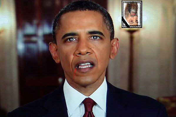 Obama, Osama, Barak, Mubarak - man kommt da schon mal durcheinander. Als nun am 2. Mai 2011 Osama bin Laden wieder einmal mausetot war (das unverzichtbare Sterbevideo als Beweismittel wird wahrscheinlich noch in Hollywood dezent mit Effekten aufgewertet), haben das deutsche Bundeskanzleramt, der US-Fernsehsender Fox und die spanische Zeitung El Pais in der Aufregung die Untaten und den Tod von Obama Bin Laden offiziell verkündet. So wichtig war der kleine Unterschied im Namen auch nicht, meine ich. Und das meinen wohl auch andere Zeitgenossen und bastelten daher schon Fotomontagen, als es noch weiße US-Präsidenten gab. Und zwar ungefähr solche (über und unter diesem Absatz, selbst bis zur Urheberschaft künstlerisch bearbeitet):