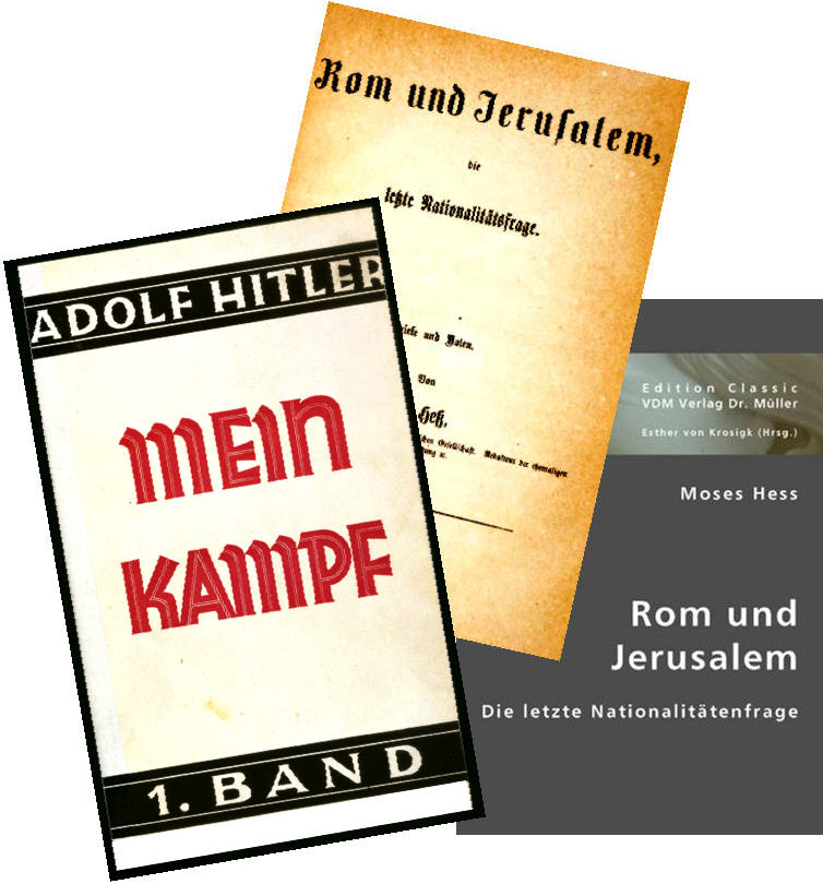 Diese radikalen Rassisten unter den Juden gibt es - ohne Zweifel. Wer "Rom und Jerusalem" von Moses Hess liest (gibt es im Internet oder auf Anfrage bei mir als PDF-Datei gratis), findet das, was Hitler in "Mein Kampf" an Rassentheorie fabulierte, schon einige Jahrzehnte vorweggenommen. Nur dass eben beide Autoren ein Ihnen persönlich näher stehendes Herrenvolk in ihrem Buch beschreiben. Von der Postulierung eines von Gott zur Weltherrschaft vorgesehenen Volkes bis zur Ausrufung der arischen Herrenrasse ist es gedanklich ja wirklich nicht so weit. Das schafft dann auch ein esoterischer Kneipenphilosoph auf der soliden gesellschaftswissenschaftlichen Basis seiner Maler-Lehre. Auch dieses rassistische Werk des Führers - lange verboten wegen der als volksverhetzend eingestuften Rassen-Ideologie darin - ist übrigens jetzt wieder frei verkäuflich in Deutschland. Und das, obwohl immer noch die gleichen Gesetze gelten dürften, nach denen es verboten wurde. Nun wird sogar vom Freistaat Bayern neu aufgelegt, während uns ein antirassistisches neues Buch zu drucken verboten wurde. Dabei hat nichts der Zionisten-Idee mehr genützt als ein Feind, der sich wie ein Monster benimmt. Diese radikalen Juden hätten den Antisemitismus erfinden müssen - oder haben sie es sogar? Womit wir schon mal das Motiv für eine Menge Ärger hätten. Was ja nicht ausschließt, dass es genug Mittäter auf allen Seiten gab, die wenig Skrupel zeigten.